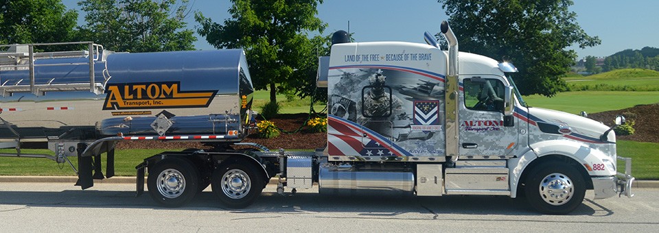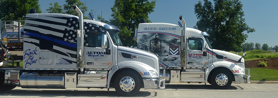 Altom Transport is proud to take this opportunity to pay special tribute to the men and women of the Armed Forces, and to all individuals who serve their country around the world. In designating these two Peterbilt trucks that serve our clients across the U.S. and Canada, these tractors proudly display, through their artwork, our support for the men and women of the Armed Forces. These tribute trucks will serve as the flagship units for Altom’s new Peterbilt 579 fleet.